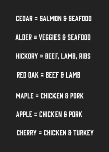 Fish & Seafood: Cedar and alder are top choices. They enhance without overpowering.