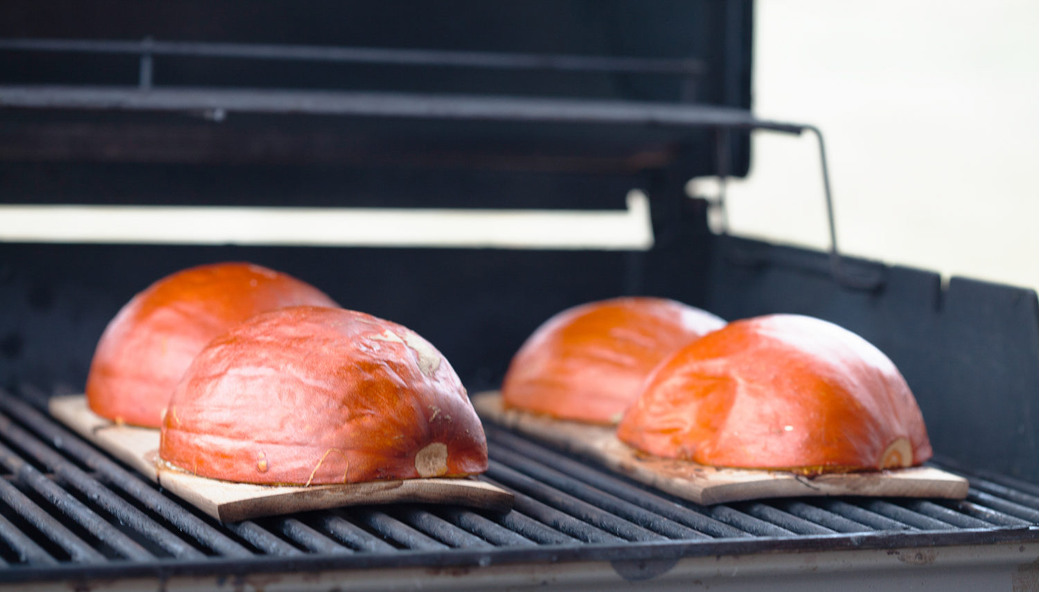 - Set the plank on the grill or in the oven. Close the lid or door, and cook for 30 minutes, or until the pumpkin is soft and slightly caramelized.