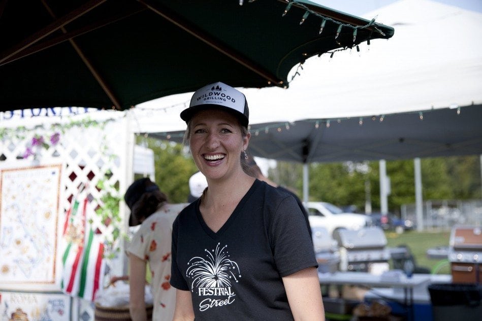 Our two biggest sellers were the Cedar planked salmon (no surprise), and our Cedar planked peaches. We hadn’t expected the peaches to take off like they did, but were not surprised that they immediately became a Festival favorite. We had collaborated with some wonderful local businesses on this tasty dessert. We had fresh, juicy peaches from Yoke’s Fresh Market, blueberries from our neighbors at Shingle Mill Blueberry Farm, and Wildwood Amaretto & Alder ice cream from Panhandle Cone & Coffee (our very own ice cream flavor).